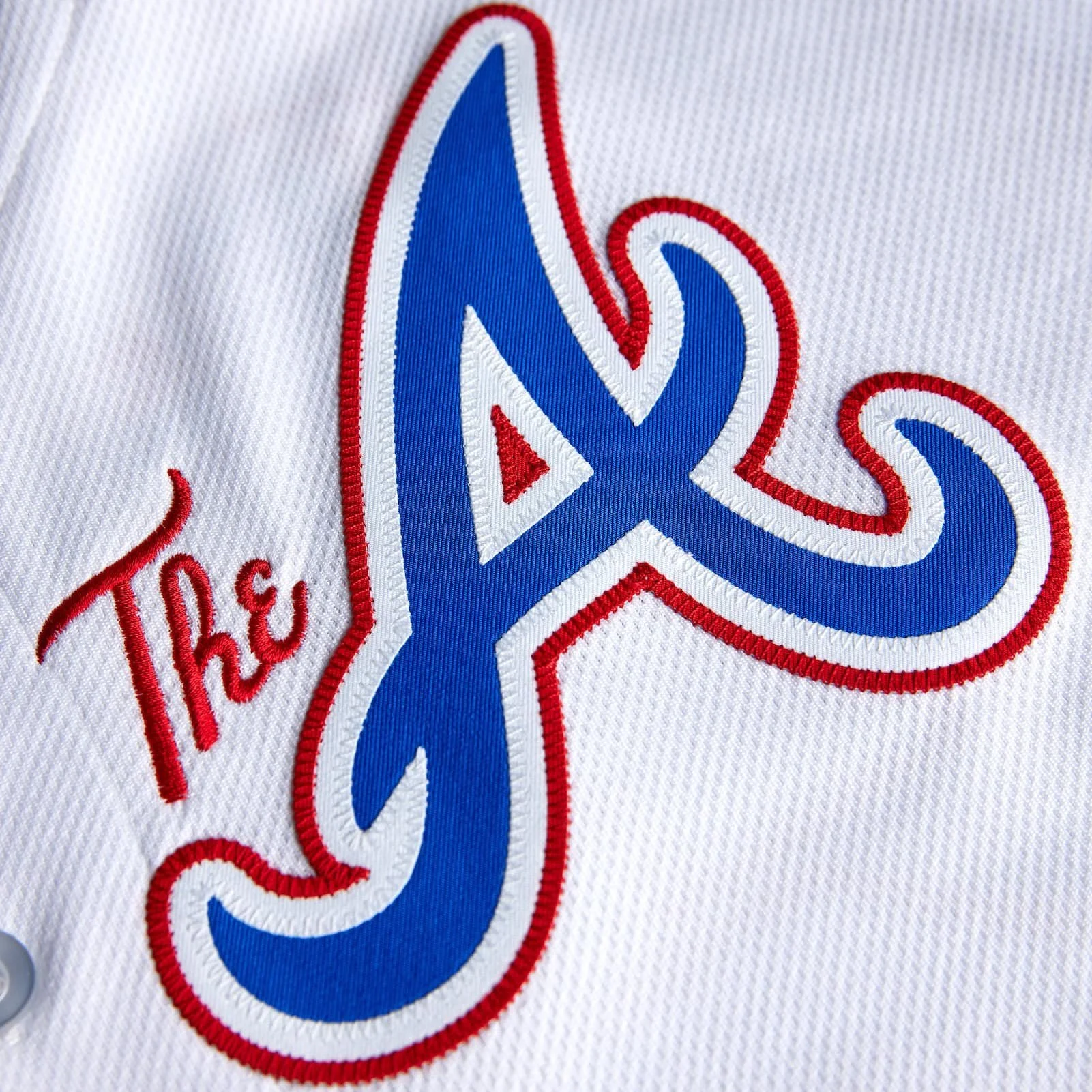 This City Connect jersey is a modern update to a classic - the iconic 1974 uniform that Hank Aaron wore when he hit home run 715 to break Babe Ruth's record. The Atlanta Braves reps their city with "The A" on the chest - the name that all Atlantans know. They always battle "For the A" and now for the first time, have a visual representation for all that they play for emblazoned on their chest.